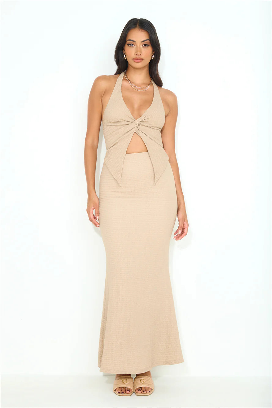 Lovely, vacay in style with the Coral Cove Halter Top. Featuring a halter tie, a twisted front design and a pointed hem. Style with the matching skirt for the best pics'.